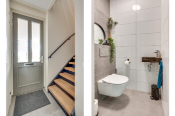 Aan de overloop is een separate toiletruimte gelegen, deze ruimte biedt de nodige privacy vanwege zijn separate uitvoering en is derhalve praktisch en ideaal. De toiletruimte is voorzien van een wandcloset, fonteintje en strak tegelwerk.