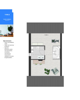 De tweede verdieping biedt diverse indelingsopties. Door het toevoegen van dakkapellen aan de voor- en/of achterzijde kun je hier twee ruime kamers creëren, ideaal voor een extra slaapkamer of een thuiskantoor.