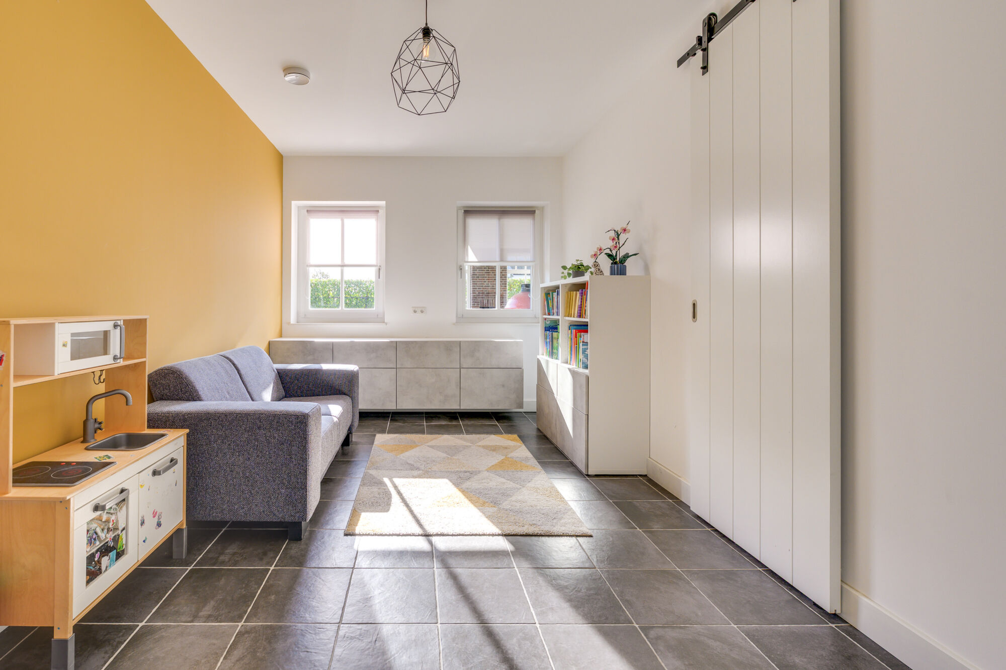 Vanuit de tweede hal loopt u door naar de speelkamer/werkkamer. Deze ruimte biedt volop plek voor de kinderen om heerlijk te spelen, maar kan uiteraard ook prima dienen als werk- of hobbykamer. U kunt de wasruimte bereiken vanuit de speelkamer. Deze ruimte beschikt over een aansluiting voor uw wasmachine en droger. Daarnaast zijn hier alle voorzieningen (afvoer en waterleidingen) aanwezig om een tweede badkamer te realiseren.