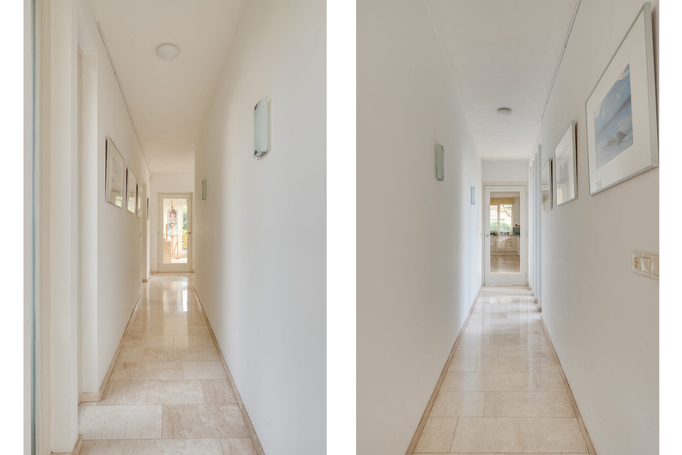 De gehele woning is voorzien van strak stucwerk en hoogwaardige en harde Napolitaanse marmervloer in de kleur beige melange, deze vloer wordt over de gehele begane grond doorgelegd.