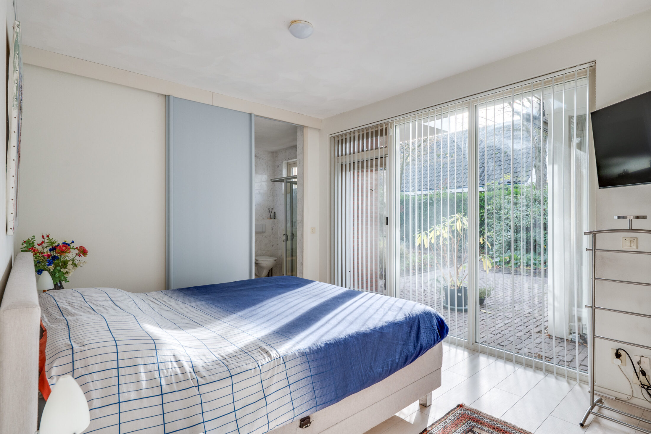 Aan de rechterzijde van deze gang bevindt zich de slaapkamer, voorzien van veel natuurlijk daglichtinval dankzij de grote ramen met tevens een deur richting de achtertuin om zo een patiogevoel te creëren! Ook beschikt deze slaapkamer over een inbouwkast over de gehele breedte en vanwege zijn oppervlakte van maar liefst 14 m² is het positioneren van uw slaapkamermeubilair geen uitdaging! De slaapkamer is voorzien van een rolluik en beschikt over voldoende ventilatiemogelijkheden via de deur en kiepraam.