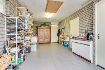 Inpandig en vanuit de oprit aan de linkerzijde toegankelijke geïsoleerde garage, voorzien van spouwmuur, vloerisolatie en vloerverwarming! De garage is circa 21 m² van oppervlakte en hier is tevens de meterkast gelegen.