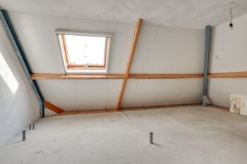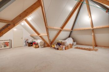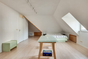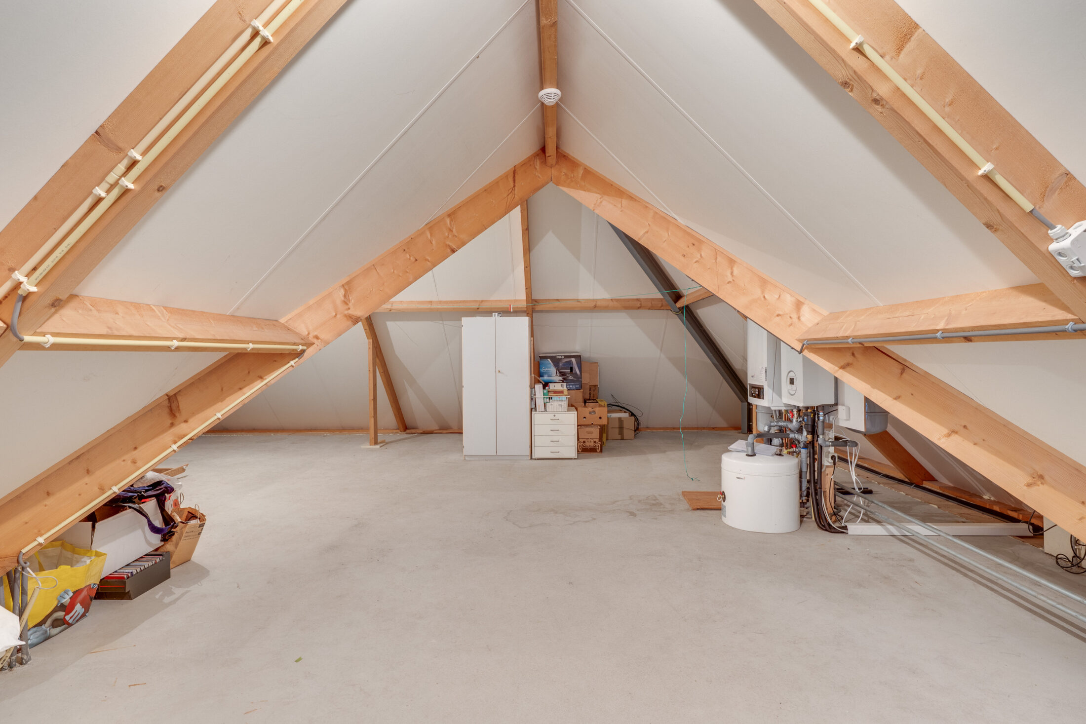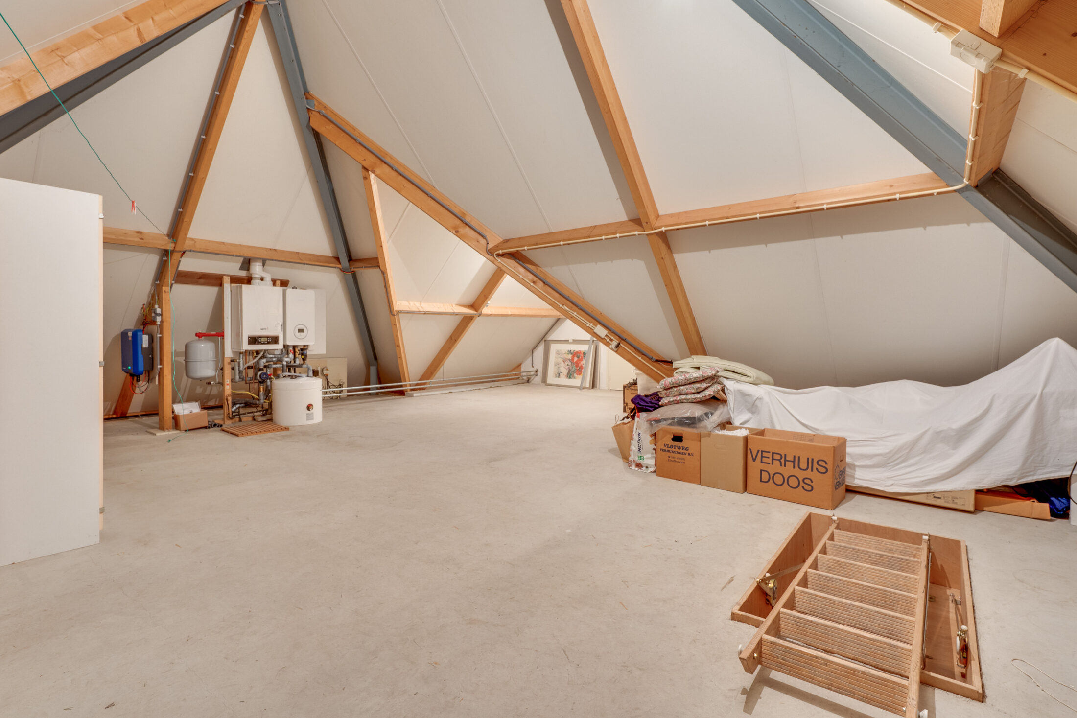De grote zolderruimte achter de slaapkamer op de eerste verdieping fungeert momenteel als bergzolder, hier bevindt zich de technische installatie. Deze ruimte is perfect te gebruiken als zolder of bijvoorbeeld in te richten als extra (slaap)kamer. De vlizotrap in de garage verzorgt toegang tot deze bergzolder.