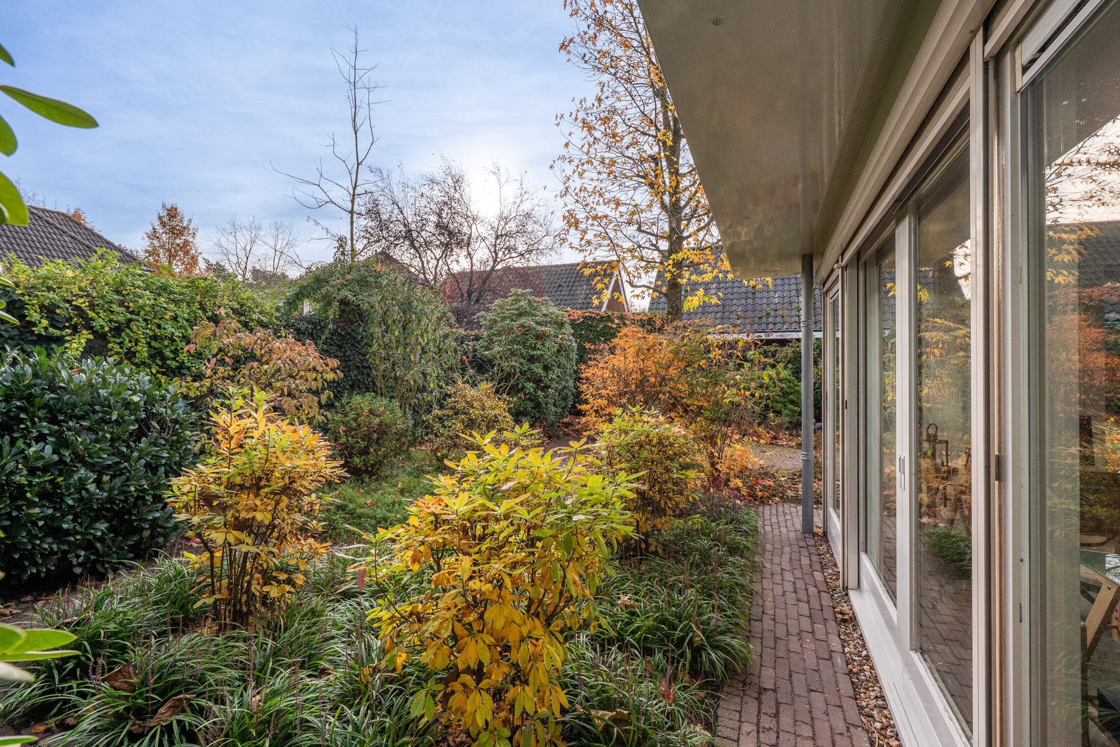 De tuin is voorzien van diverse terrassen en begroeiing, daarbij beschikt deze tuin over gezellige paadjes! Vanuit deze achtertuin is tevens mogelijk aan de rechterzijde rondom te lopen grenzend aan de rechtse oprit waar de voordeur gelegen is. In de tuin bevindt zich ook een bergingsruimte welke afsluitbaar is.