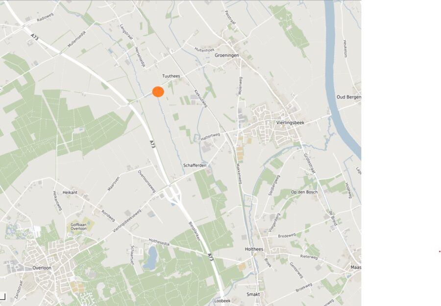 De kavel is vrij en landelijk gelegen in een bos- en natuurrijke omgeving tussen Vierlingsbeek, Overloon en Boxmeer. Aan het beekdal van natuurontwikkelingsgebied “De Oeffeltse Raam”. Op loopafstand van de Overloonsche bossen “De Hondsbergen”. Rivier De Maas en Unesco werelderfgoed gebied “De Maasheggen” is gelegen op ca 3,5 km.