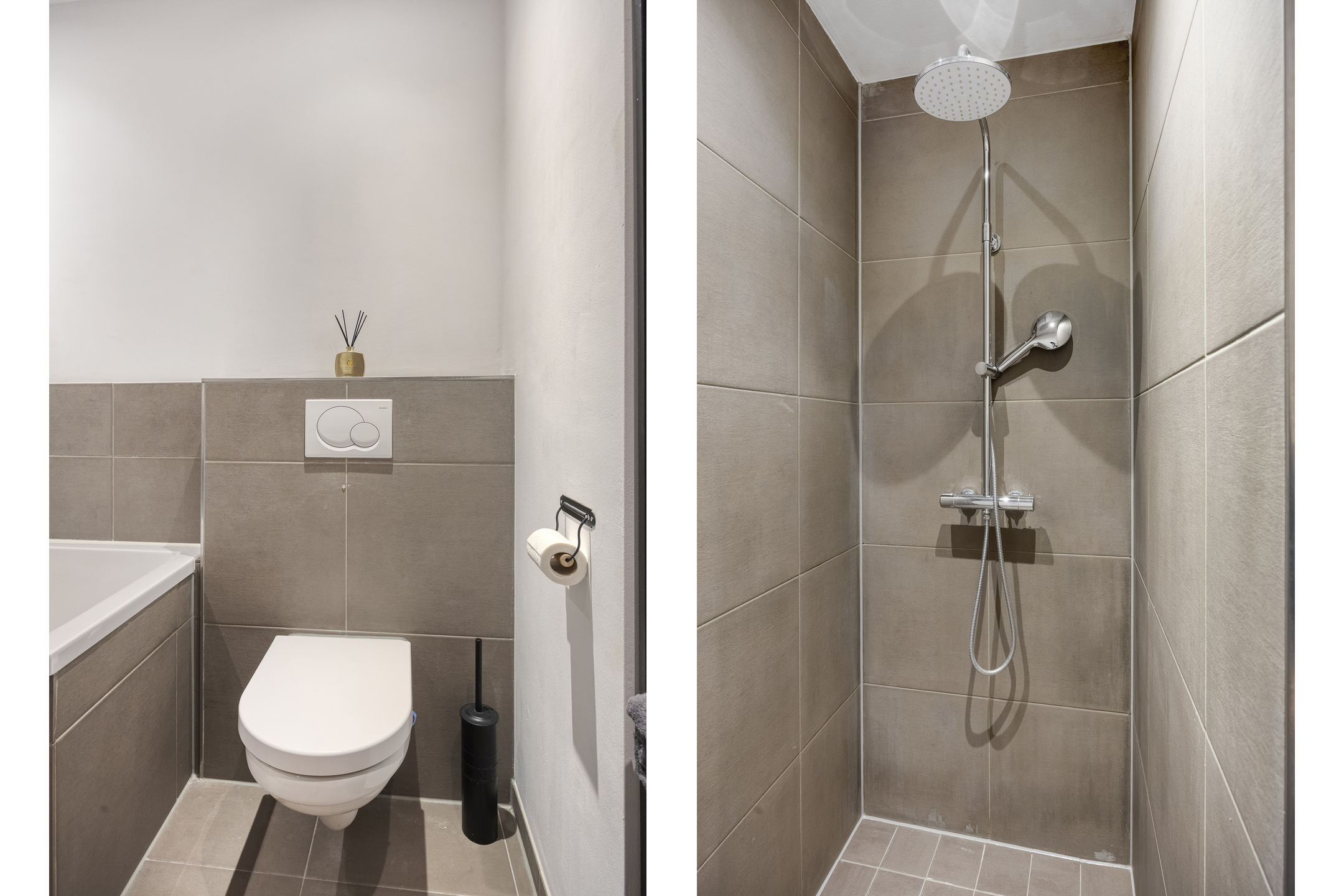 De badkamer is betegeld met neutraal gekleurde tegels. Aan sanitair heeft u de beschikking over een tweede toilet, inloopdouche, ligbad en wastafel.