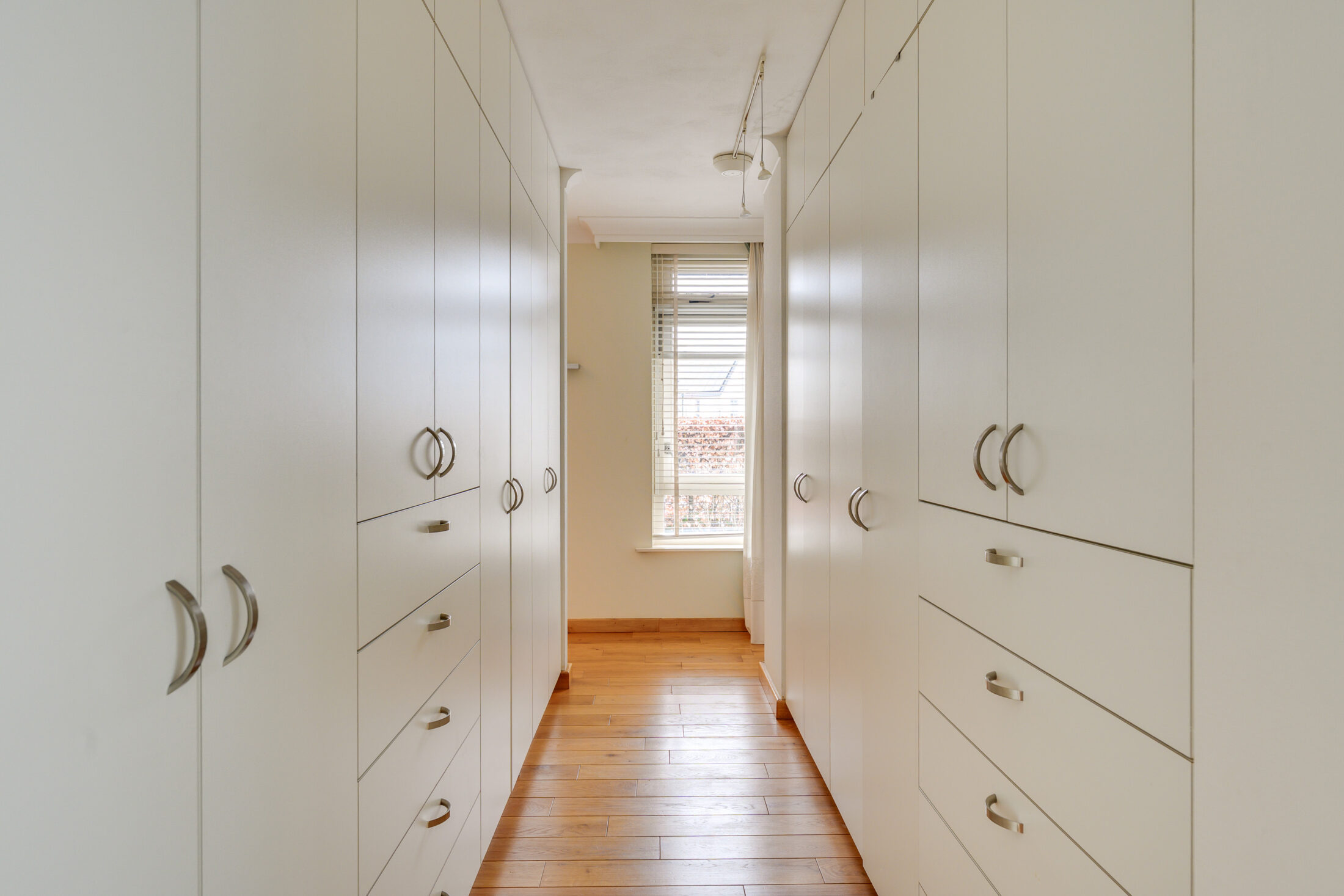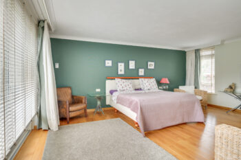 Deze slaapkamer is ruim 40 m² groot! Een zee aan ruimte en beschikt daarbij ook over een zeer gewenste inloopkast met verdiepingshoge kastenwand aan beide zijden voor optimale bergruimte. De vloer is belegd met parket. Vanuit deze grootste slaapkamer heeft u fijn contact door de grote raampartijen met de tuin.