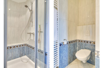 wandcloset is separaat gelegen en naast de badkamer toegankelijk