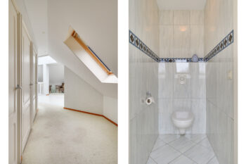 Na de inloopkast loopt u de fraaie, met grote tegels uitgevoerde badkamer in met hoek whirlpool, dubbel wastafel, douchecabine en wandcloset. Deze is en suite uitgevoerd en verzorgt tezamen met de slaapkamer de mogelijkheid om gelijkvloerse bewoning toe te passen in dit bijzondere woonhuis!