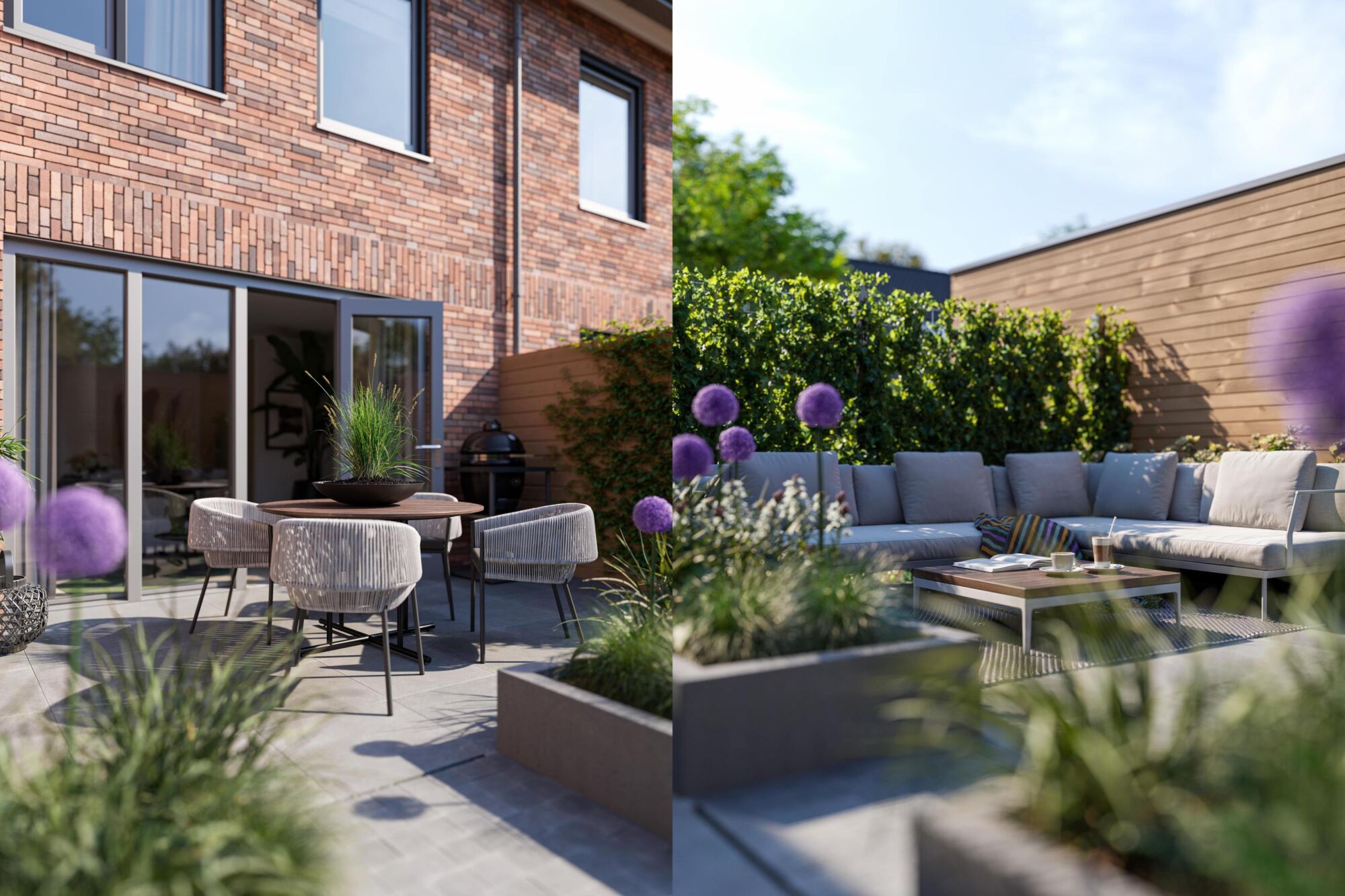 Met de beschikbare opties geef je jouw nieuwe woning eenvoudig een persoonlijke touch. Denk bijvoorbeeld aan een extra ruime woonkamer dankzij een uitbouw van 1,20 of zelfs 2,40 meter aan de achterzijde. Wil je meer verbinding tussen binnen en buiten? Kies dan voor openslaande tuindeuren of een schuifpui.